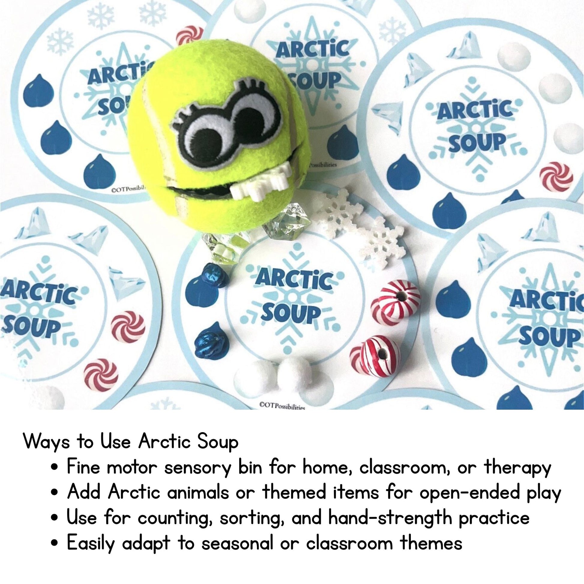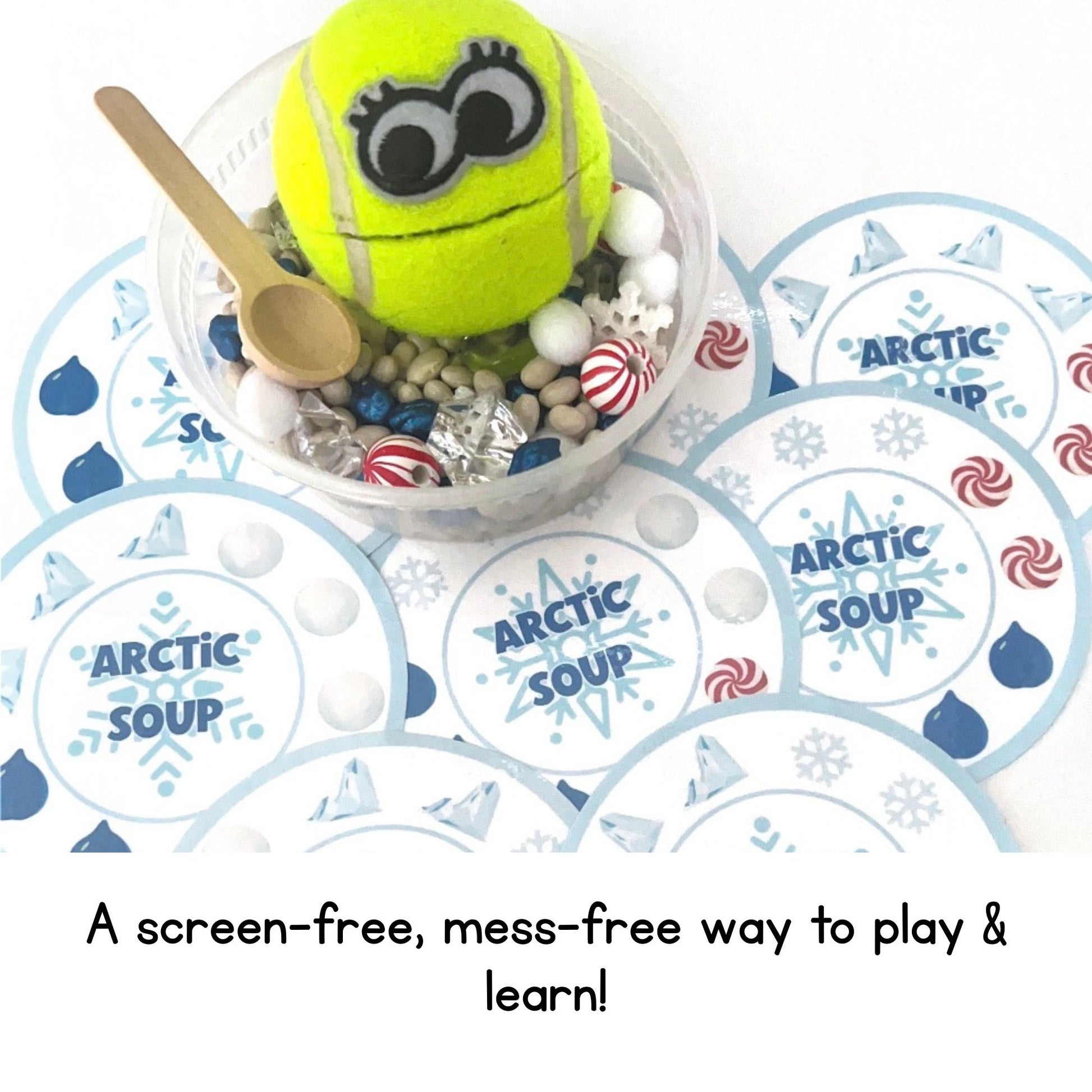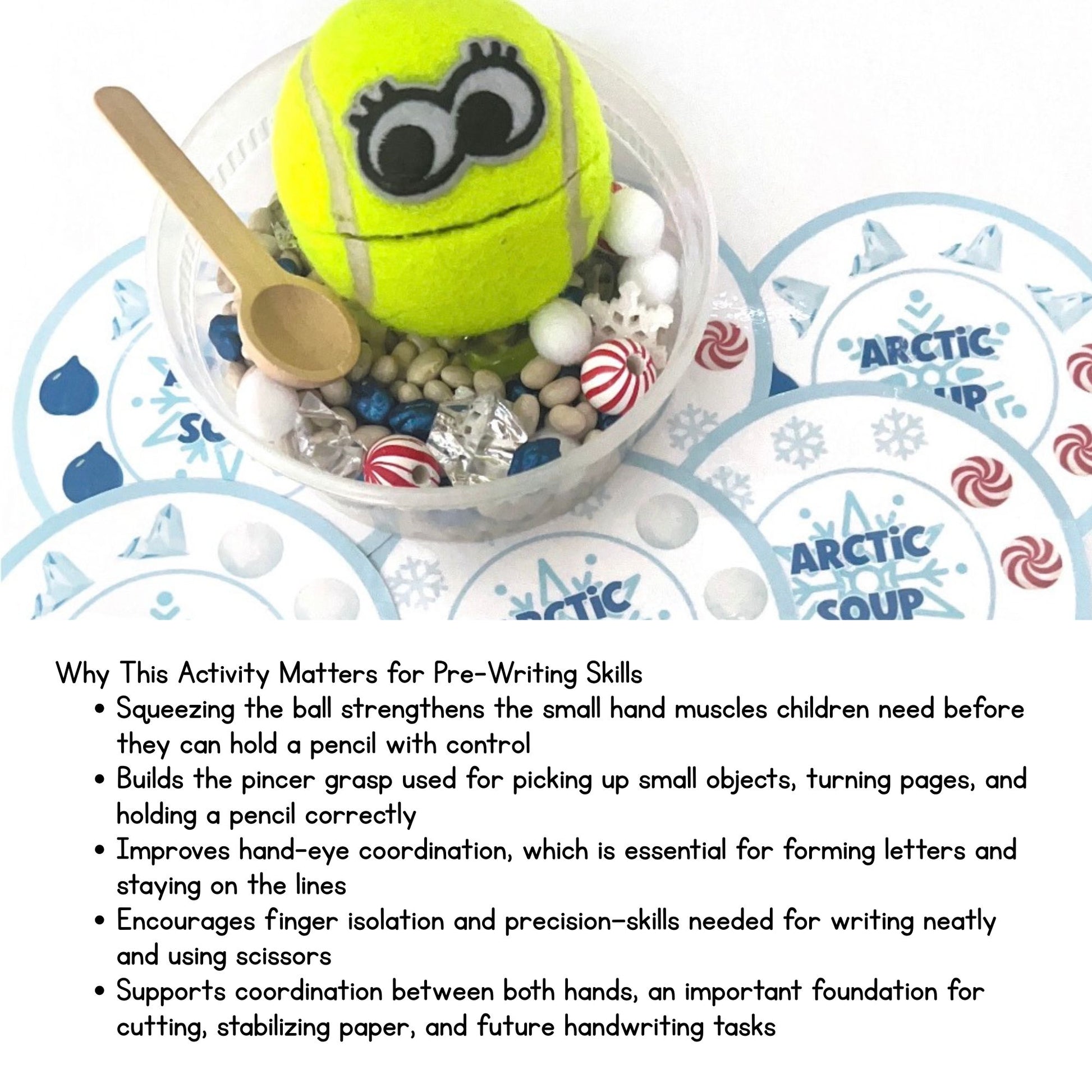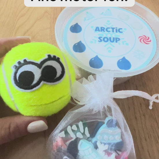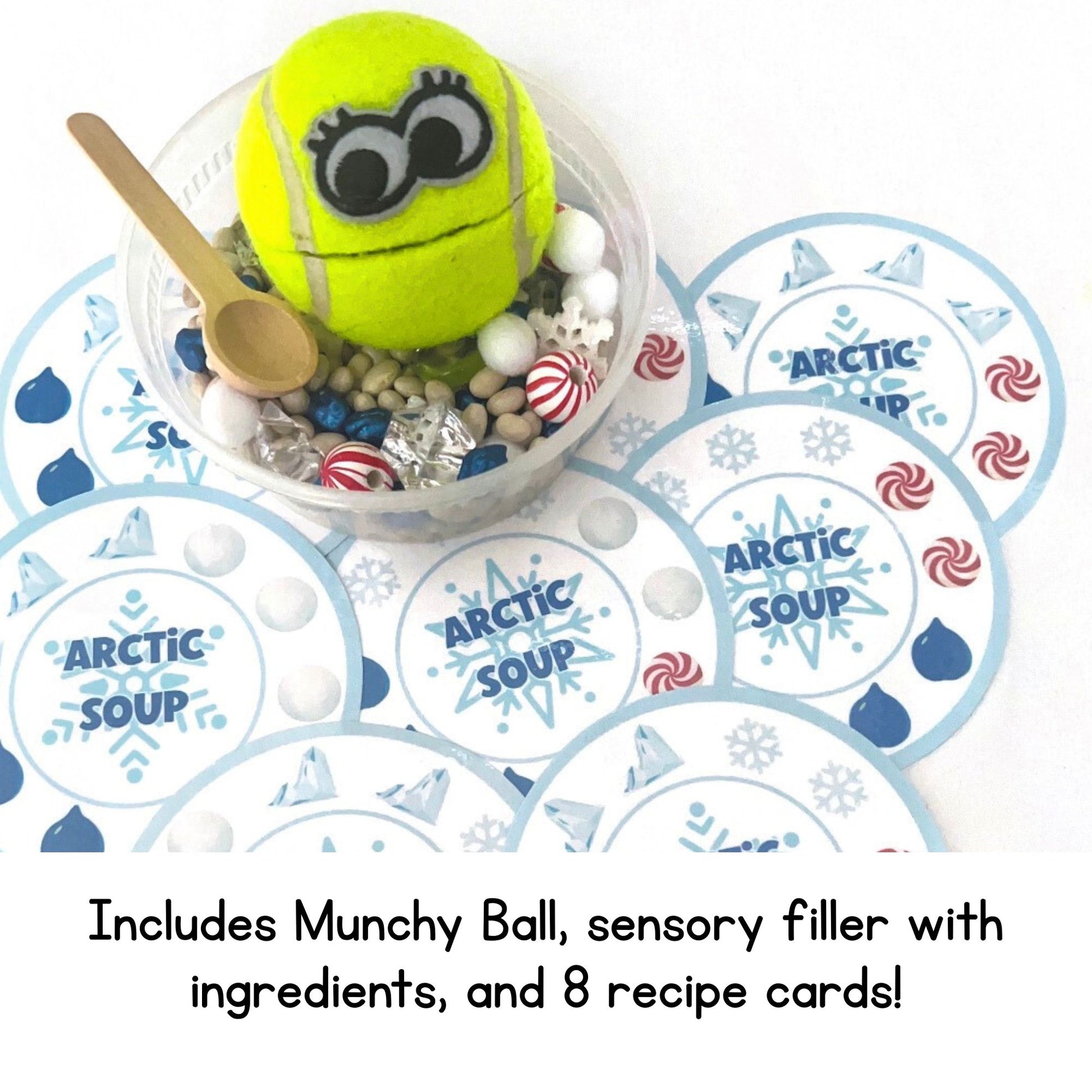 Enjoy our Arctic Soup Munch & Go mini sensory kit! Designed by a pediatric OT for hands-on skills building, children will love this cozy winter-themed activity that lets kids scoop, find, and feed their Munchy Ball the matching soup ingredients while building hand strength and coordination.