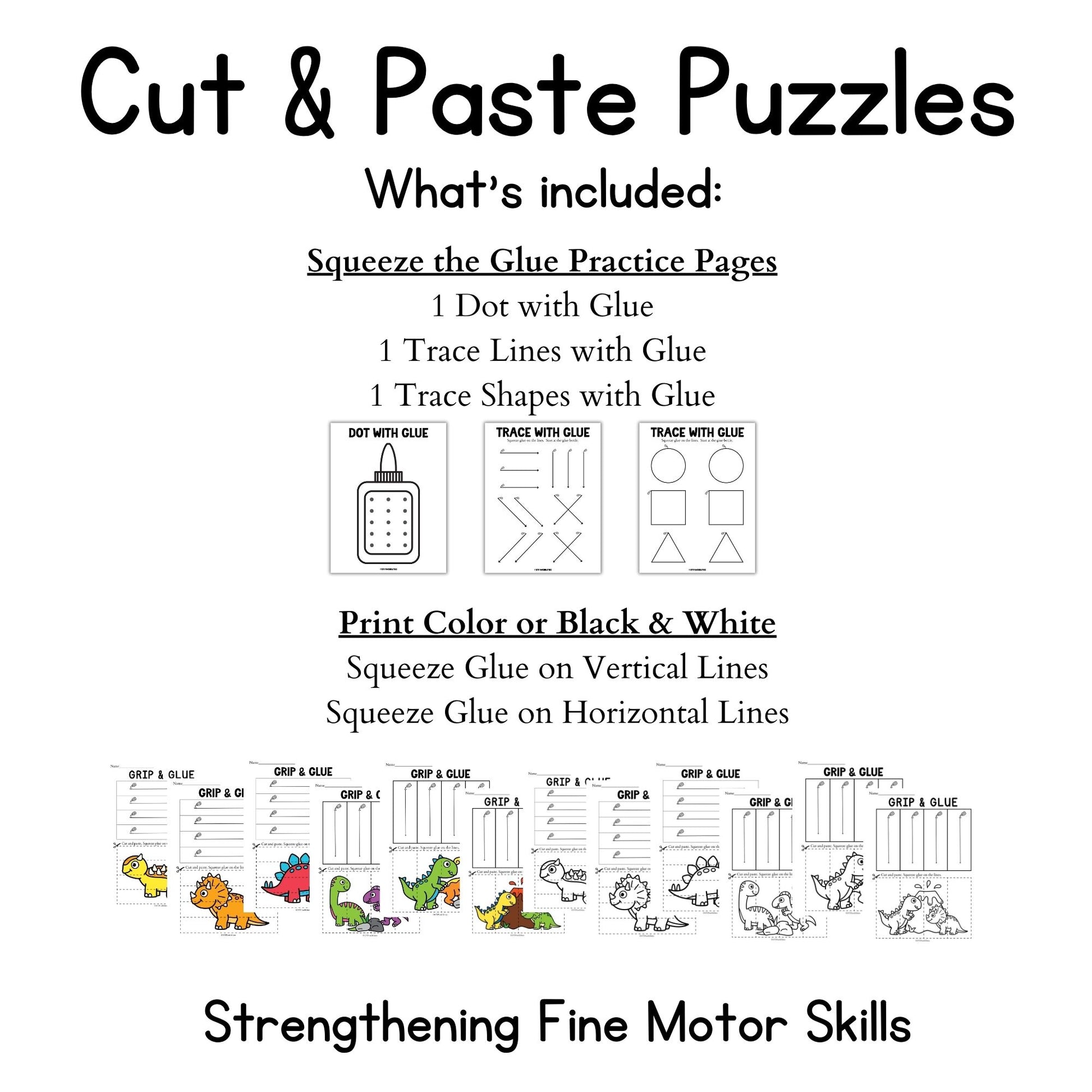 • 12 Cut & Paste Puzzles (Color + B/W)