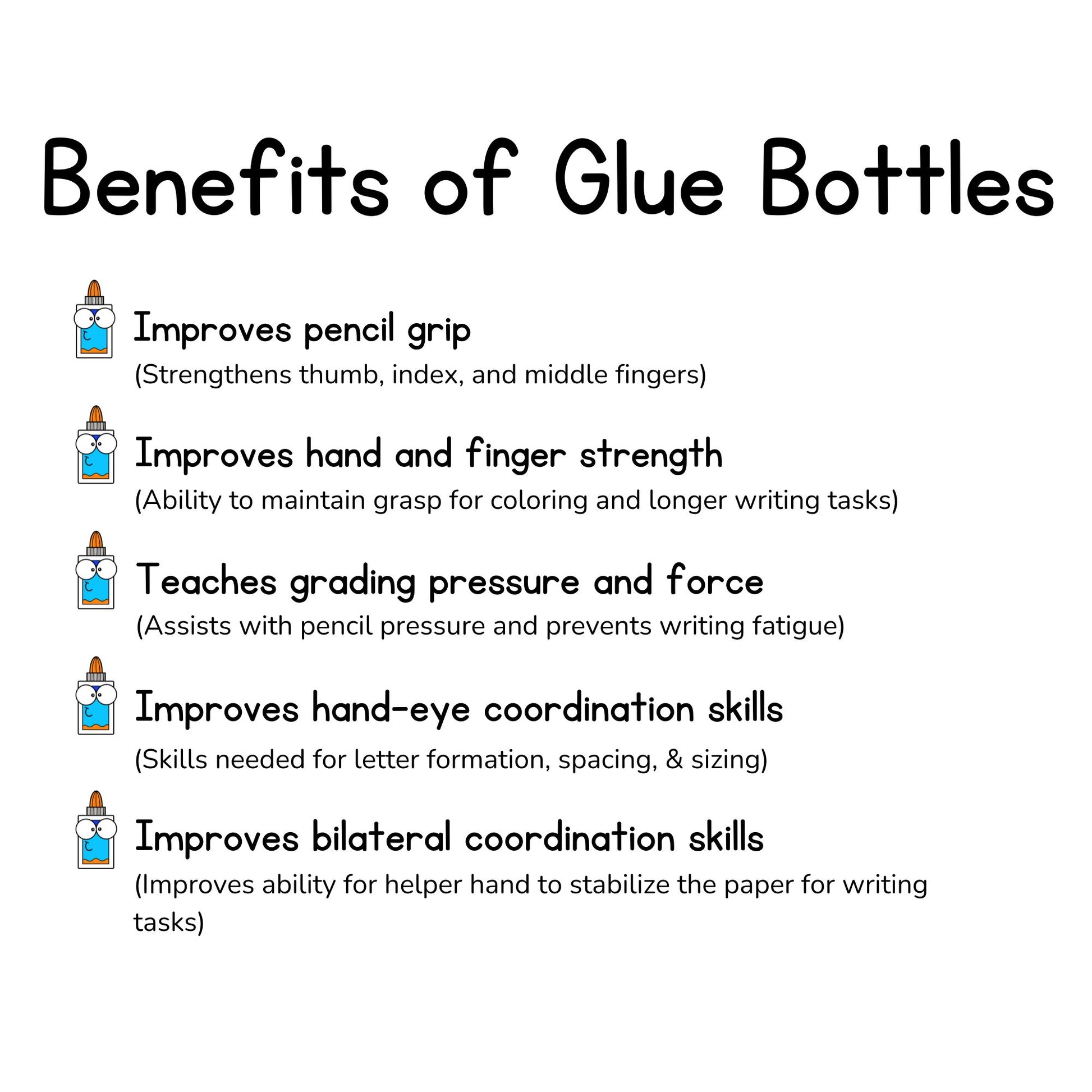 Squeezing and tracing with glue strengthens little hands, improves control for writing, and builds eye-hand coordination.
