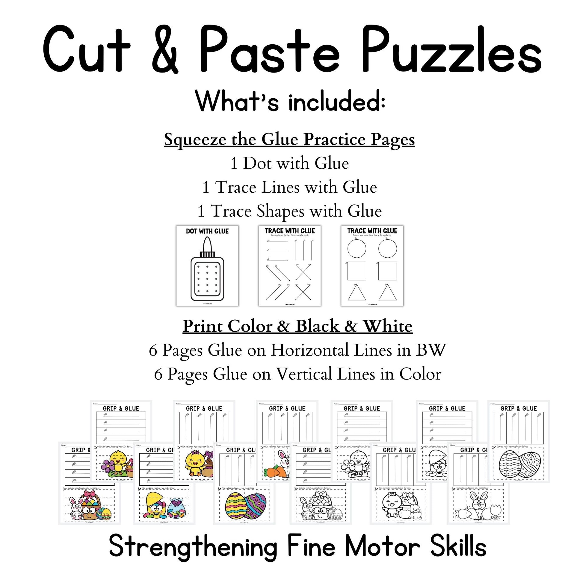 • 12 Cut & Paste Puzzles (Color + B/W)