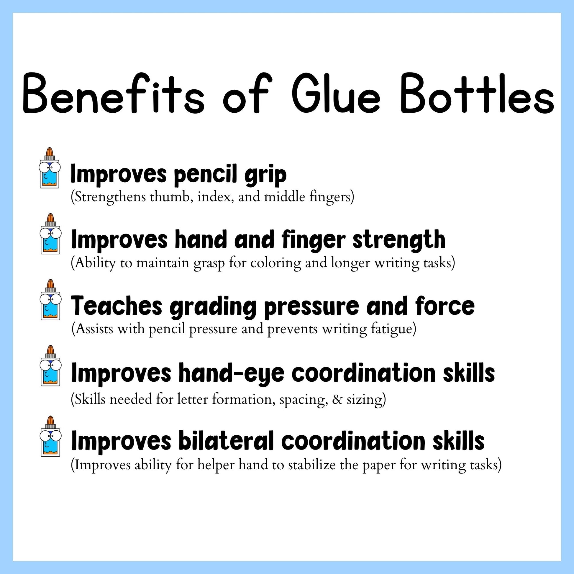 Squeezing and tracing with glue strengthens little hands, improves control for writing, and builds eye-hand coordination.
