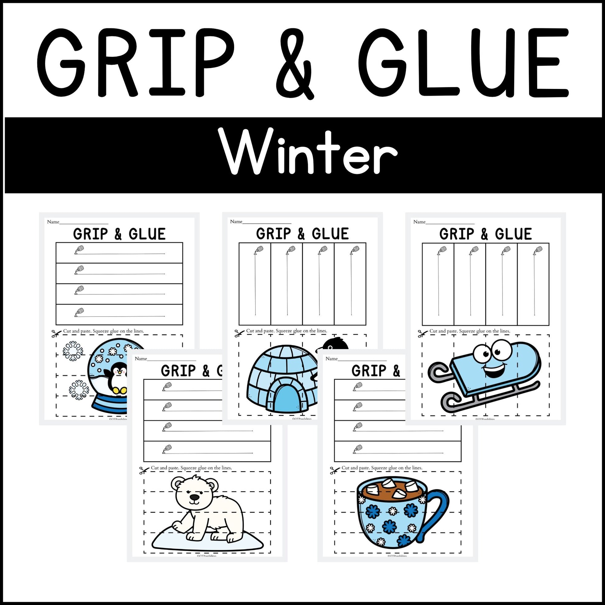 Winter Grip and Glue Worksheets